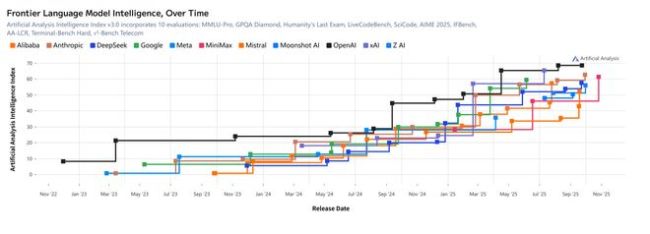 在Artificial Analysis Intelligence指数榜单上,除了排在前几名是闭源的OpenAI的GPT-5、谷歌的Gemini 2.5、xAI的Grok、Anthropic的Claude 4.5以外,紧随其后的都是开源模型。