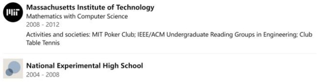 在MIT获得数学和计算机科学双学位后,陈信翰进入一家自营交易公司从事量化投资工作,负责为股票和期货开发机器学习算法。