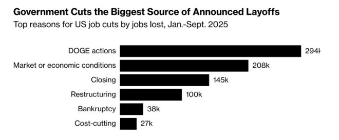 裁员现象波及多个行业。政府部门是裁员重灾区,今年已宣布近30万个工作岗位削减。科技和零售行业也遭受重创,例如西南航空公司就在其历史上首次进行了大规模裁员。由于政府停摆以及特朗普政府时期对联邦统计体系的削减,美国劳工统计局等官方数据发布机构近期信息不畅,这使得Challenger等私营机构的数据在评估市场状况时显得尤为重要。