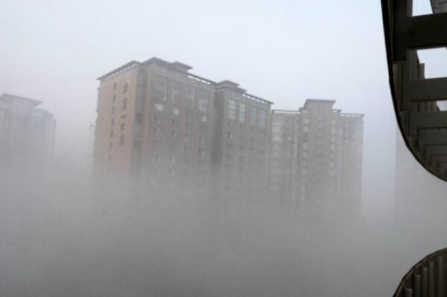 资料照片:阴霾垄罩北京住宅建筑。(Kevin Frayer/Getty Images)
