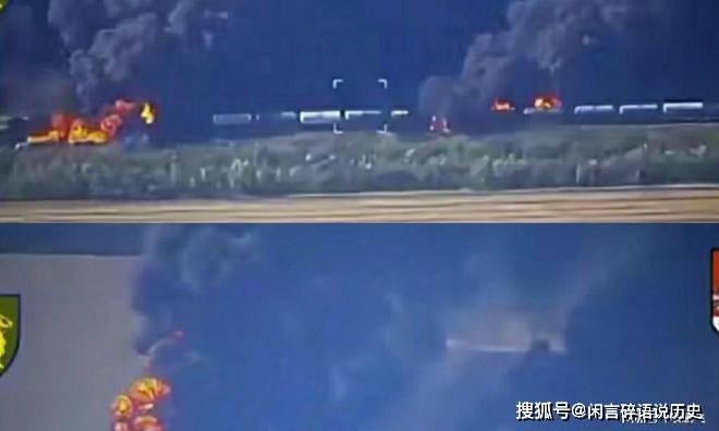 乌克兰无人机的航拍仪清晰记录下了这一瞬间,在空中可以看到火车正不断飘起浓厚的黑烟。