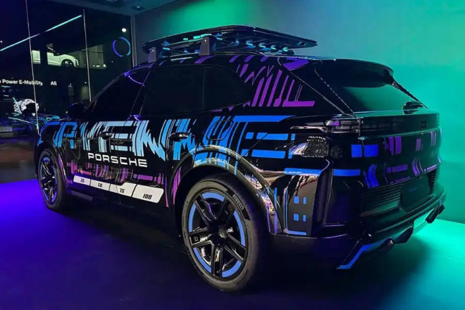 车身侧面,新车整体圆润动感,采用传统的门把手样式,轮圈风格也与保时捷纯电家族的车型保持一致。车辆尾部,尾灯采用贯穿式设计,全新的格子状尾灯样式相当别致,尾部两侧设计有导流槽,后包围同样相当动感。