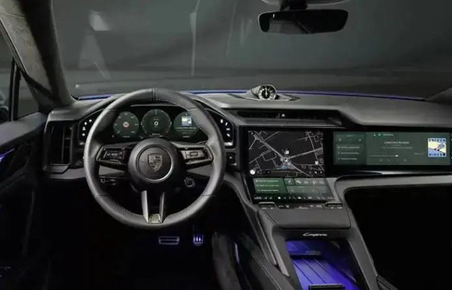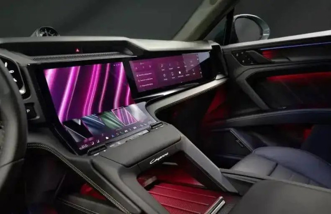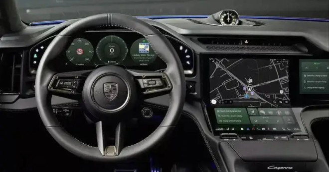 内饰方面,纯电Cayenne采用曲面液晶仪表屏,配备了12.25英寸弧形曲面中控屏、14.25英寸OLED数字仪表盘与14.9英寸副驾驶专属屏幕,整体科技氛围十分浓厚。