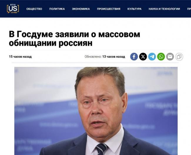 与俄罗斯统计局关于人均收入有所增长的说法相反,俄罗斯国家杜马副议长尼古拉·阿雷菲耶夫公开宣称,三年多的战争之后,俄罗斯公民已经“变得贫困”。
