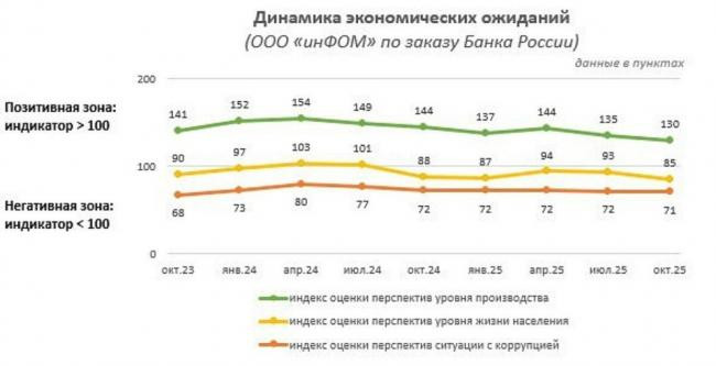 民意基金会的调查显示了俄罗斯面临的经济困难的规模。在四季度的四个指数中,评估人口生活水平前景的指数下降幅度最大:10月份为85点。这比7月份低8个百分点,是自 2022 年 12 月以来的最低值。