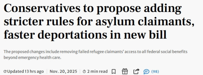 加拿大保守党要求大幅收紧难民申请,切断难民福利,加快驱逐