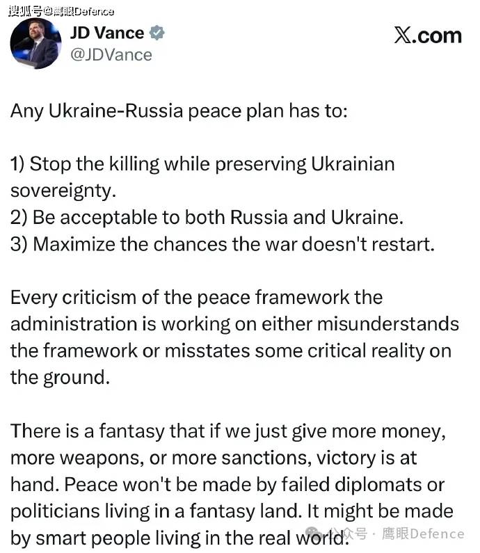 甚至就连万斯也出面“灭火”,称任何俄乌和平计划都必须遵循三项原则,维护乌克兰主权的同时停止杀戮,同时被俄乌接受,最大限度降低战争再次爆发的可能性。