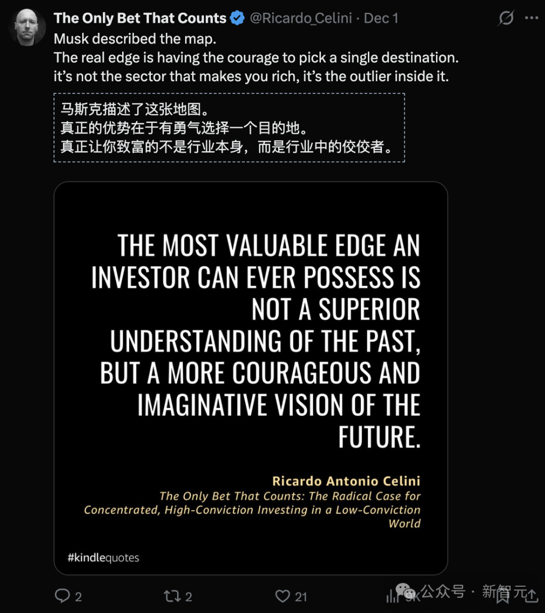 马斯克在投资未来,正如Ricardo Antonio Celini在《唯一值得下注的选择》所言: