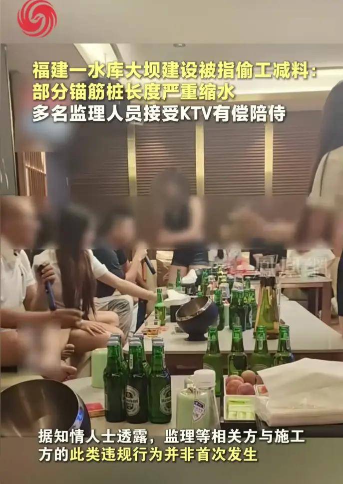 果然,有视频实锤,多名监理人员欣然接受施工方的宴请,在KTV里推杯换盏,还有异性有偿陪侍。这画面太美不敢看,这哪是来监理的,这简直是来度假的。