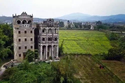 于是一栋栋碉楼高耸于乡野,风格却包罗万象,希腊的柱廊,罗马的柱式,印度的廊亭、哥特的尖顶,欧洲的城堡、伊斯兰的拱券、葡萄牙的骑楼,飞机火车的壁画,奇妙地拼接到了一起,这种混搭像是无字丰碑,炫耀着主人们的见识与富有,也快意着几代人的恩仇。