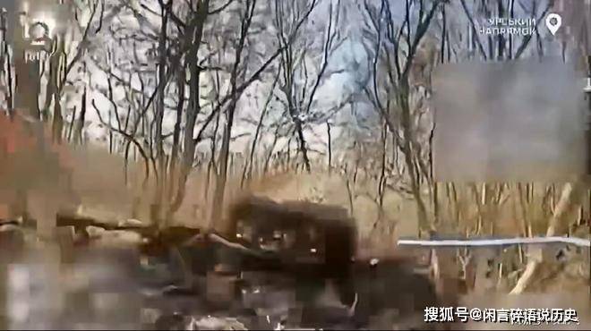 战斗中,俄军一辆隐藏的坦克还被击中,履带和发射器受损严重,看来它的隐蔽效果并不好。