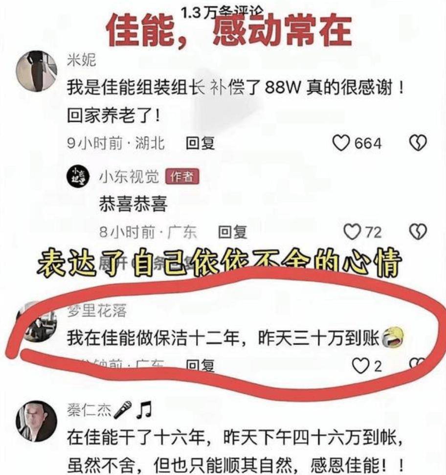 据多位员工透露,此次中山佳能的补偿标准为平均约2.3N起步,个别工龄长者甚至拿到60万以上的补偿款。没有设上限、没有卡工龄,连保洁、安保等合同工也照章执行。部分工龄满30年的员工补偿金额超过百万元。
