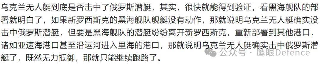 其他俄罗斯舰艇都已离开,仅剩这艘孤零零的潜艇留下,这也验证了我最初的判断,即只要看黑海舰队是否会重新部署,就能知道这艘潜艇到底有没有被击中,事实再次证明了我的判断。