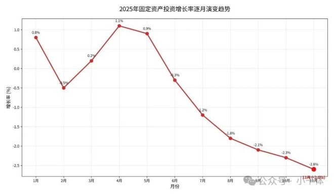 至此,2025年虽然还有一个月,但基本可以确定,2025年将是1995年有纪录以来,首次出现固定资产投资负增长!