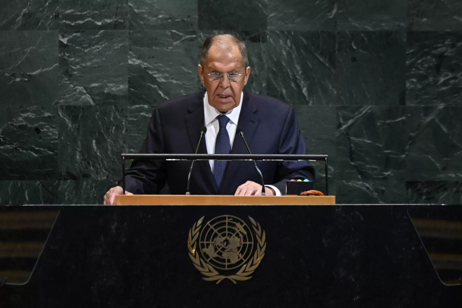 9月27日,在位于纽约的联合国总部,俄罗斯外交部长拉夫罗夫在第80届联合国大会一般性辩论上发言