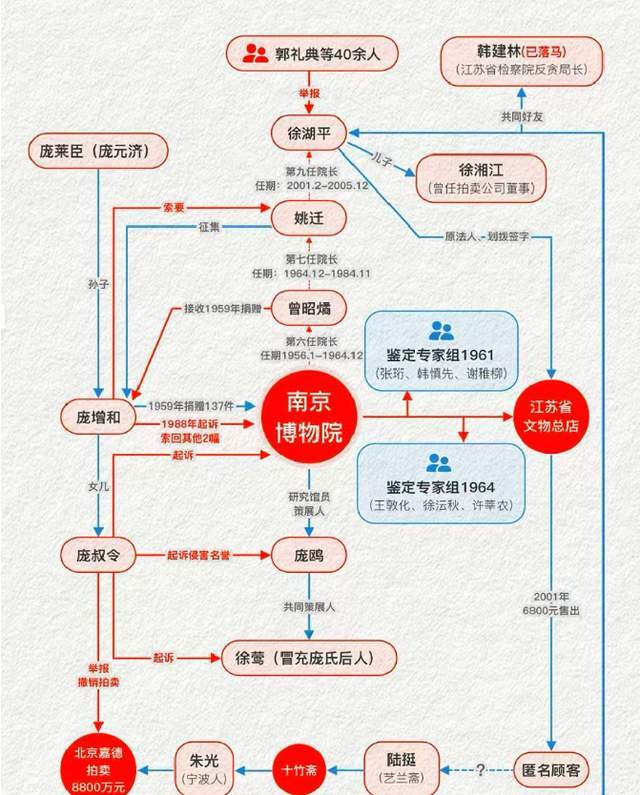 南博退休职工郭礼典站出来实名举报。这位老爷子69岁,举着工作证对着镜头,指控徐湖平"七宗罪"。他说徐湖平任职期间,未经国家文物局批准,擅自撕毁故宫南迁文物保管箱上的封条,把大量珍贵文物鉴定成"赝品",低价卖给自己主管的江苏省文物总店,再转手倒卖给他儿子在上海开的拍卖公司,最后卖给法国商人和各地文物贩子。