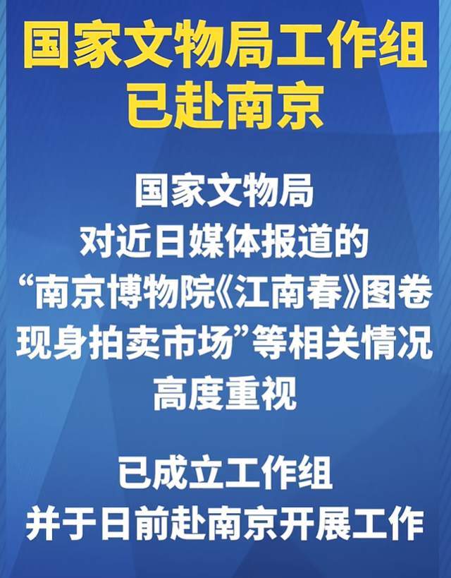 同一天,国家文物局宣布成立工作组,就南京博物院文物管理中的有关情况开展核查。
