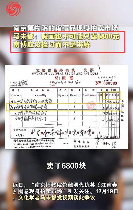 南京博物院出具了字画的去向的证据,他们将字画调拨给了江苏省文物总店。