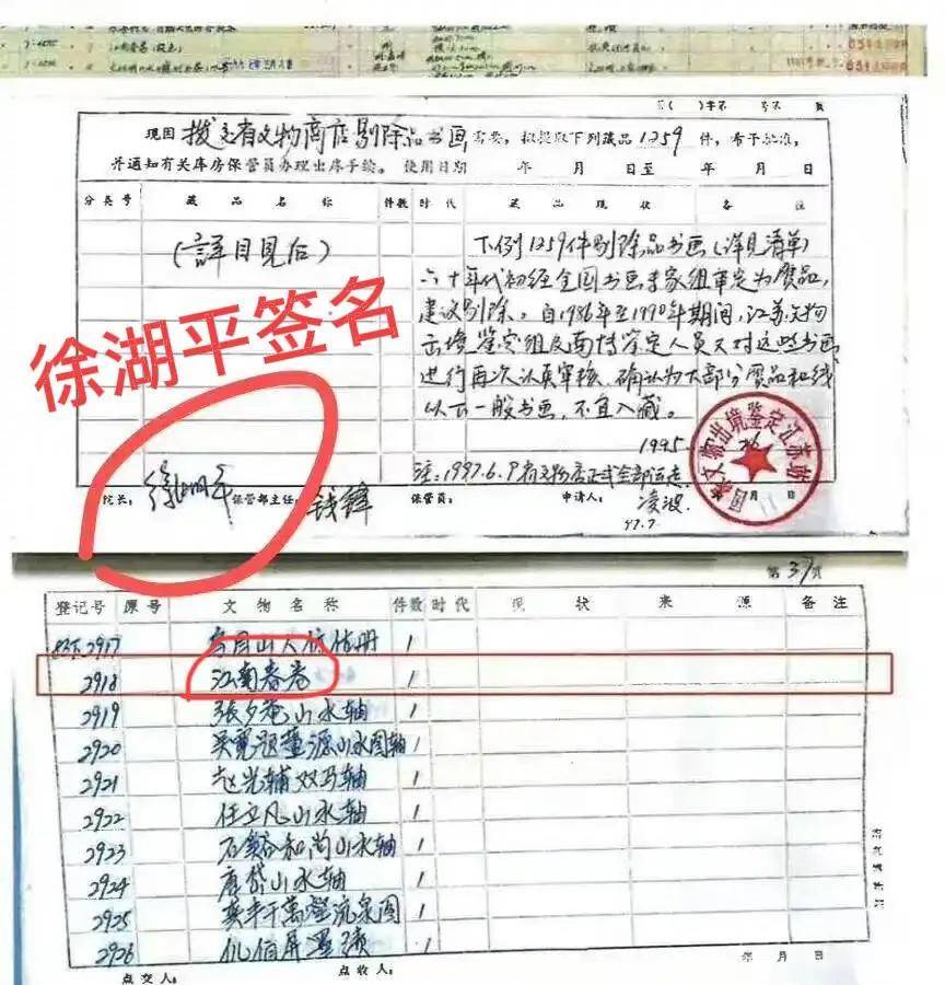 有人发现这条线索始终围绕着一个人,那就是前任院长徐湖平,就是他签字同意调拨字画。