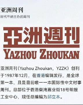 《亚洲周刊》是一本总部位于香港的综合性中文杂志,内容涵盖政治、经济、文化等多个领域。它由美国时代华纳集团于1987年创立,后于1994年被香港明报企业集团收购,现为马来西亚华人富豪张晓卿旗下世界华文媒体有限公司所有。