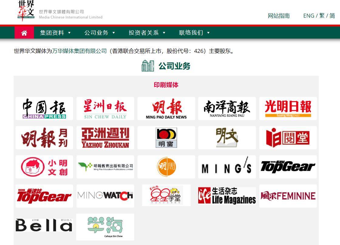 旗下拥有《星洲日报》等11个版本日报及30余份杂志,包括《明报》《亚洲周刊》等知名刊物。提供与旅游相关的服务,形成多元化业务布局。