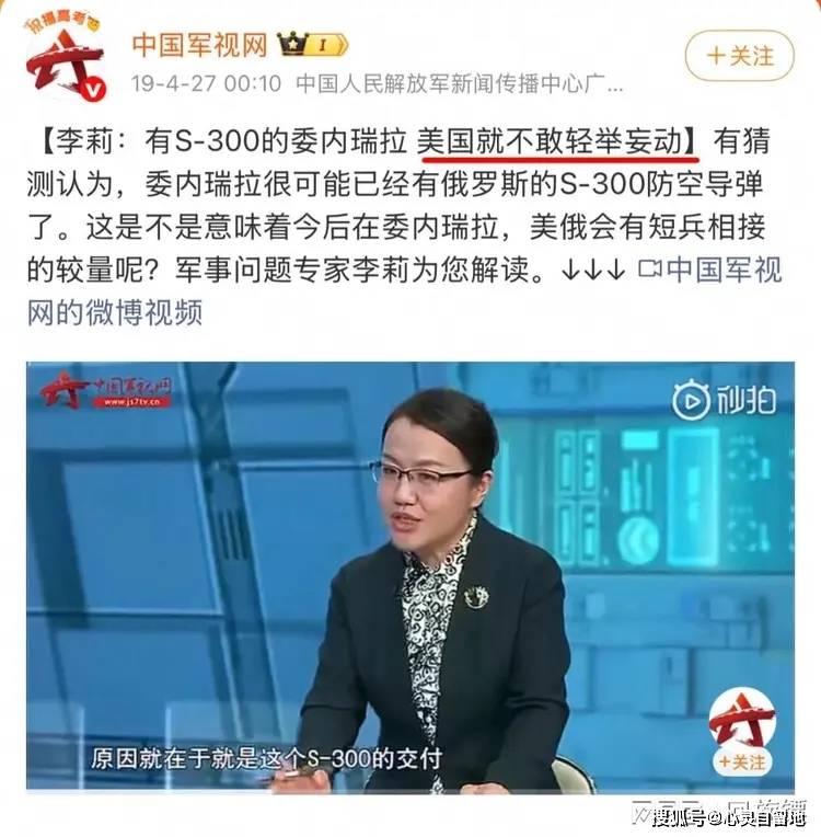 比如,知名军事专家李莉在节目中表示,“拥有 S-300 的委内瑞拉,美国就不敢轻举妄动”,如今事态的发展成这样,李莉专家不知做何感想?