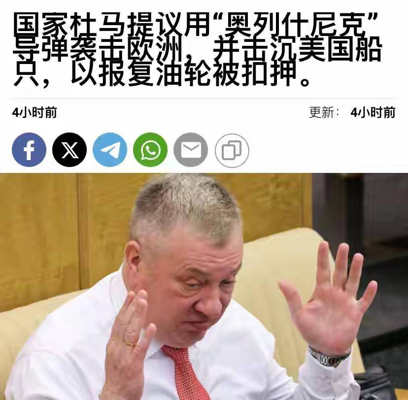 愤怒的情绪迅速从民间蔓延至政坛,俄政府高官接连放出强硬狠话。俄国防委员会第一副主席阿列克谢·茹拉夫列夫公开表态,称美军的扣押行动等同于“对俄罗斯的全面入侵”,呼吁俄军直接出动舰艇,用鱼雷击沉美国海岸警卫队船只,“给对方一个永生难忘的教训”。