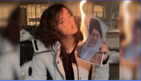 伊朗女子冲塔,火烧哈梅内伊画像(网络图片)