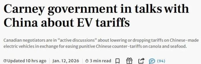 但加拿大汽车行业已经明确拉响警报。汽车制造商和零部件企业普遍认为,任何释放“对中国电动车态度软化”的信号,都可能在CUSMA谈判的关键节点上,直接激怒美国。有人直言,取消关税不仅“不可理解”,而且“极其危险”。