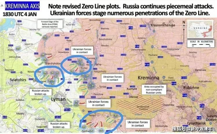 北部,俄军沿着林带推进,占领了郊区一些农业建筑;南部,乌军夺回了莱曼第二学校,从而得以继续向东穿过树林推进……此外乌军还重新夺回了莱曼最东面马斯利亚基夫卡区一半的面积,双方当下仍在争夺该区的东部街道。