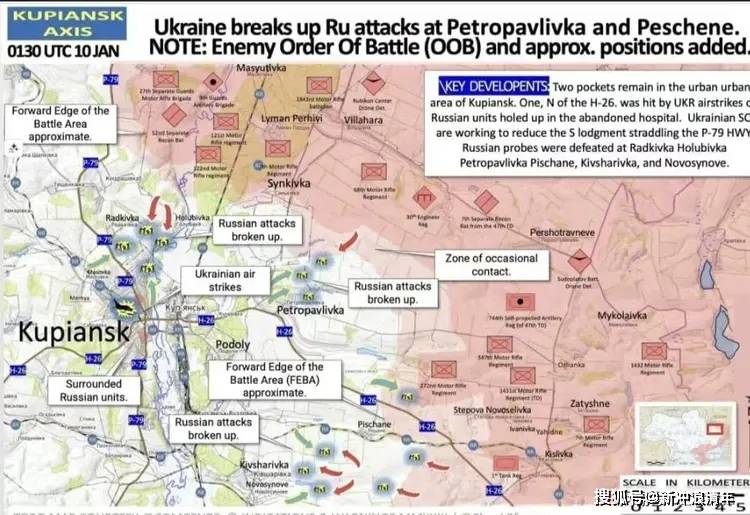 库皮扬斯克城外乌军打得不错,城内乌军1月9日也肃清了城内的残余俄军,但昨日城内遭到了俄军滑翔炸弹轰炸,出现了一定伤亡。
