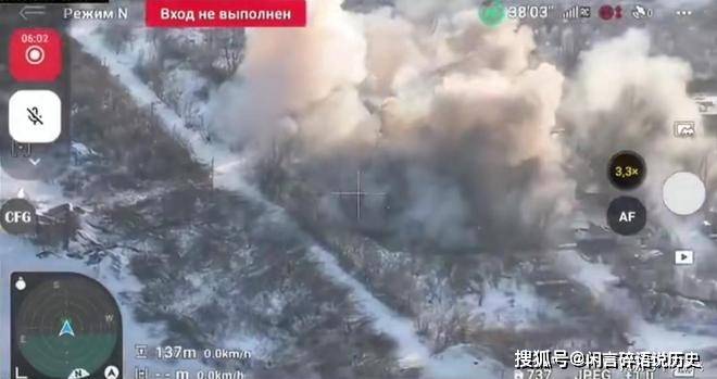 航拍仪记录下了俄军阵地遇袭的瞬间,爆炸过后据点被完全摧毁,随即被浓烟包围。