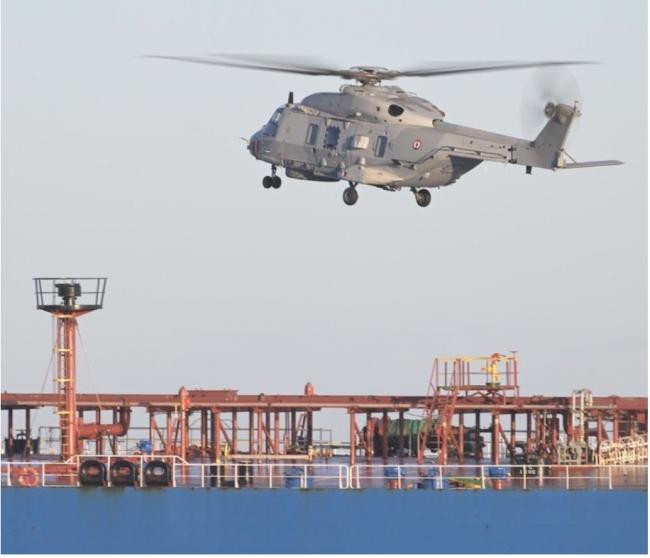 2026年1月22日,法国海军在地中海公海拦截并扣押了一艘从俄罗斯出发的油轮。图为法国人员观察涉事船只。(Reuters)
