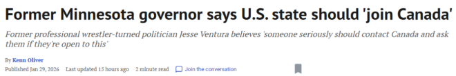 随着美国联邦移民执法人员在明尼苏达州的部署引发越来越多的愤怒情绪,该州一些人开始提出一个听起来颇为离奇的解决方案:让明尼苏达成为加拿大的第11个省。