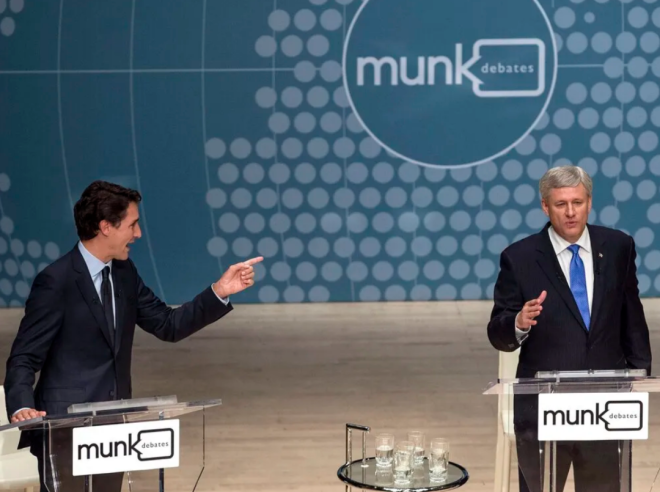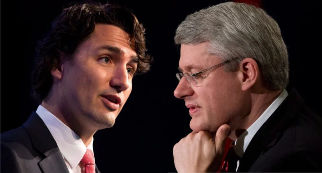 2015 年大选中,自由党承诺三年内每年赤字仅 100 亿加元,用于基础设施建设,并在 2019 年恢复平衡预算。哈珀警告称,这一承诺不可信:“特鲁多先生自己都不了解预算,他承诺的支出远超能力。”