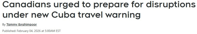 联邦政府敦促目前在古巴的加拿大人保持信息畅通,遵循当地当局指示,并注册“海外加拿大人登记服务”,以便紧急情况下能迅速联系到他们。