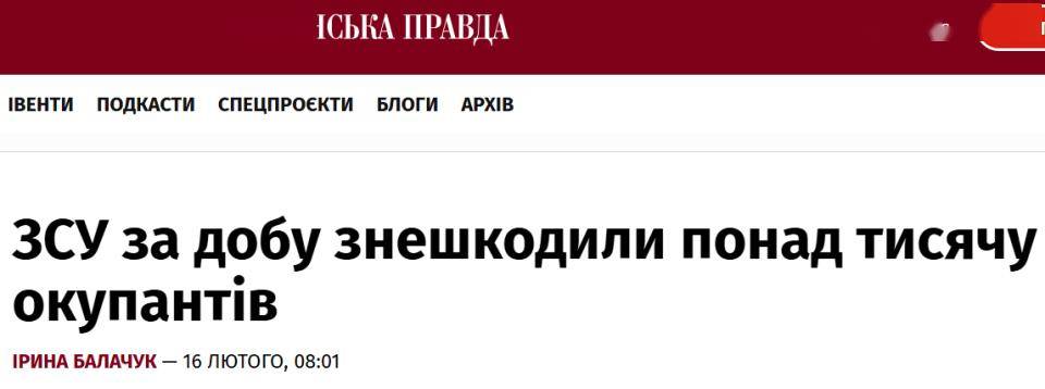 乌克兰的反击非常成功,1月16日的乌克兰真理报援引乌克兰武装部队总参谋部在Facebook页面发布的战报报道称,过去一天,乌克兰国防部队在战斗中至少造成了1180名俄罗斯入侵军人的战损(伤亡),缴获了800多件占领者的武器和军事装备。