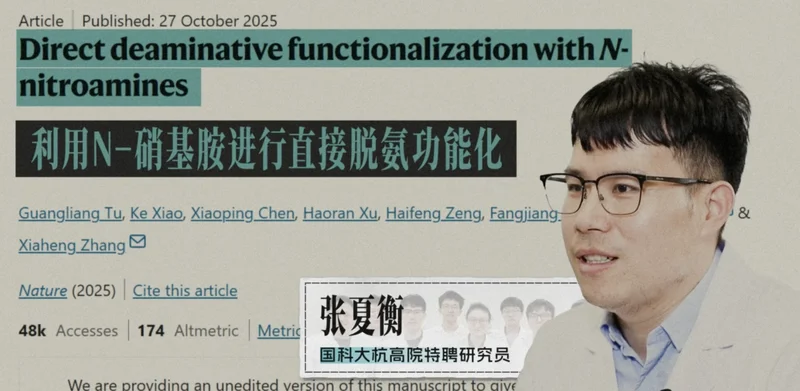 事情是这样的,前段时间,国科大杭高院张夏衡团队在《 nature 》上发表了一篇论文。在这篇论文里,提到了一种新的制药合成方法,绕开了传统制药过程中容易发生爆炸的重氮化合成路径,还能大幅降低制药成本。