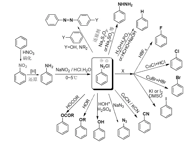 把苯胺放进去,就几乎可以变成任何想要的东西 —— 溴、氯、氰、羟基,甚至是氢本身,都能装上去。
