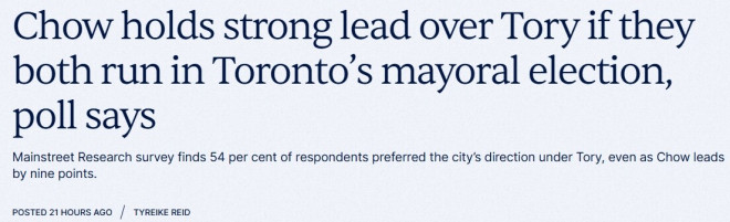 - https://www.torontotoday.ca/local/city-hall/chow-new-poll-but-majority-city-better-under-john-tory-11921294