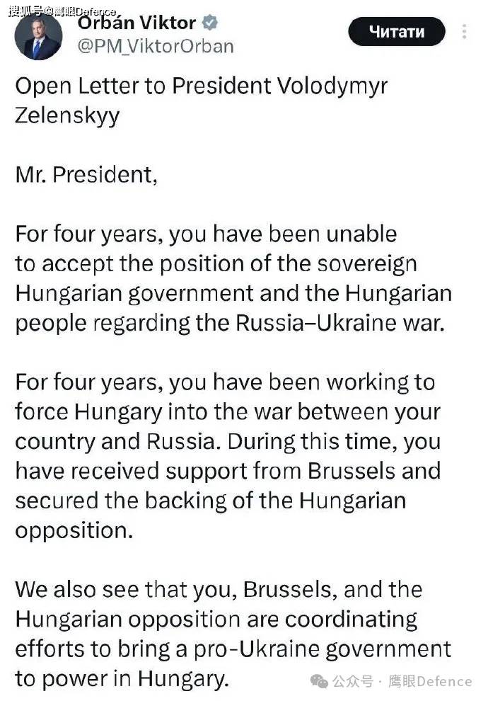 不过,就在斯洛伐克总理菲佐下令停止向乌克兰提供紧急电力、Politico发文后,欧尔班却让步了,选择向乌克兰示好,欧尔班在社交媒体上发表了给乌克兰总统泽连斯基的公开信:“我呼吁你立即开放‘德鲁日巴’输油管道),并停止任何进一步损害匈牙利能源安全的行为。请对匈牙利表现出更多尊重!”