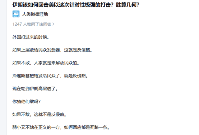 刷知乎,刷到一个直接爆上热榜的提问,哈梅内伊遇袭离世,美以的空袭还在持续,伊朗为什么不给老百姓发枪,让全民起来抵抗?