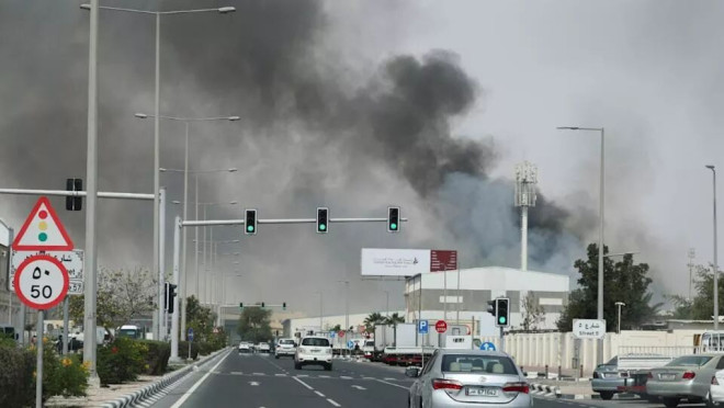 卡达首都杜哈3月1日连续第二天遭到伊朗无人机与导弹攻击,市区冒出熊熊浓烟。路透社