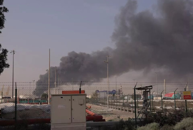 2026年3月1日,迪拜杰伯阿里港(Jebel Ali Port)遭伊朗攻击后冒出黑烟。路透社