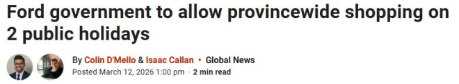不过,Global News获悉,福特内阁计划实施全省范围的改变,允许所有零售商在家庭日和维多利亚日获得营业豁免。