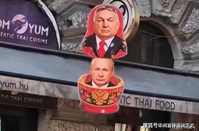 这也激起了匈牙利民众的不满,抗议者还颇具讽刺地举起了“套娃”——当欧尔班的画像被放下时,突然出现了普京的身影。