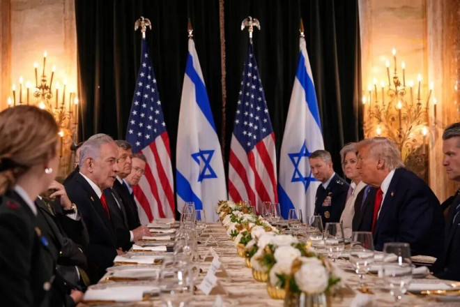 特朗普在佛罗里达州海湖庄园会晤到访的以色列总理内塔尼亚胡 / 图源:新华社(美联社)