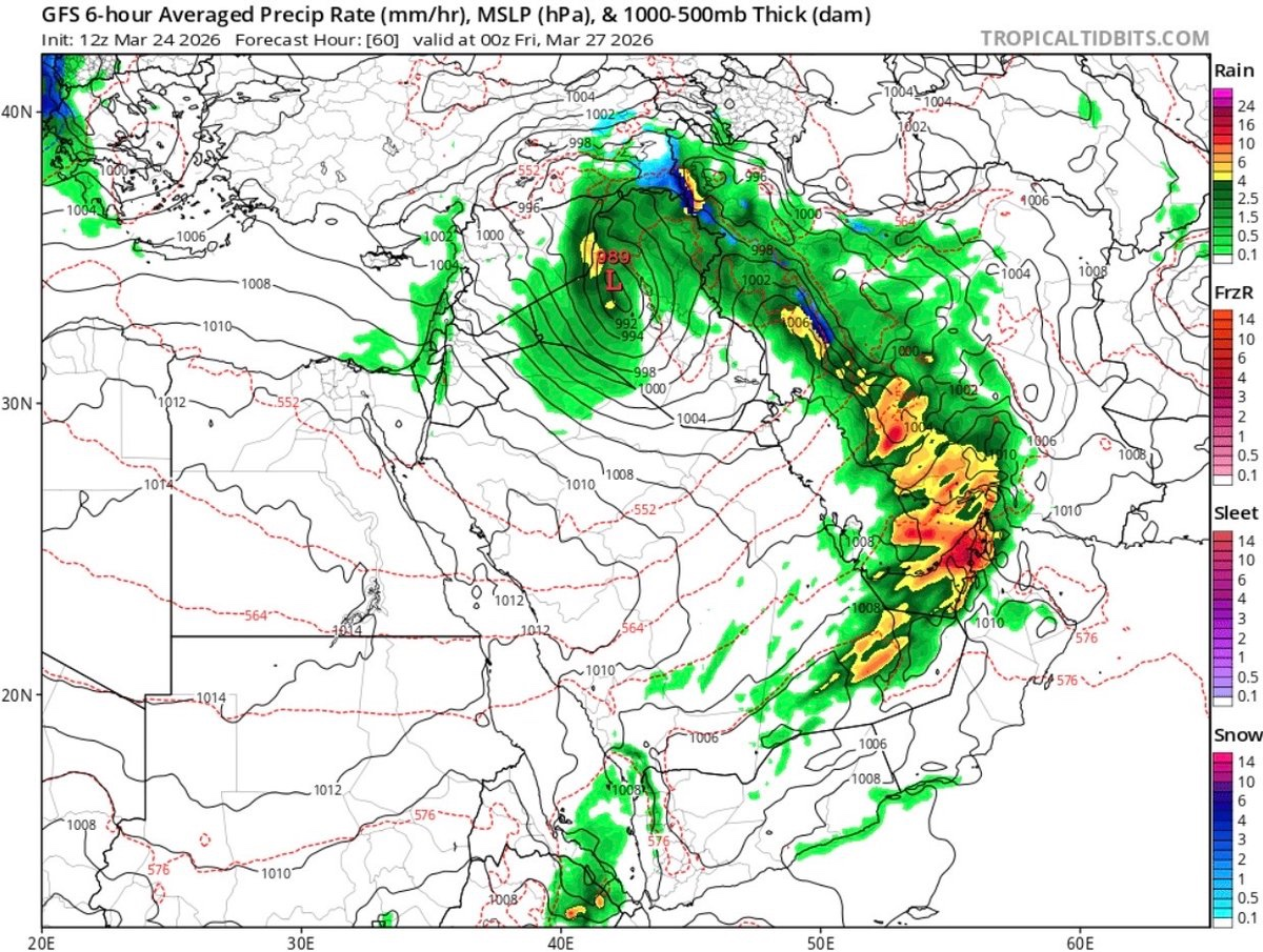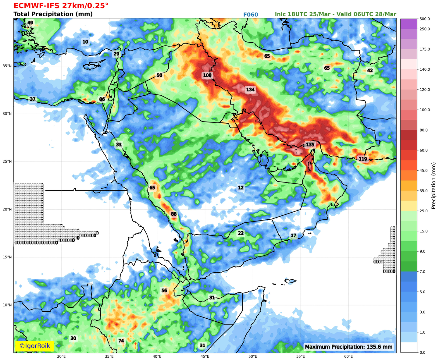插播场外参考事件:因为罕见低压系统穿越波斯湾沿岸,伊拉克、卡塔尔、阿联酋、伊朗正在发生一次至少百年一遇[1]级别大范围暴雨和强对流天气,站点+48小时雨量普遍超平时1年,内陆可能引发沙尘暴。