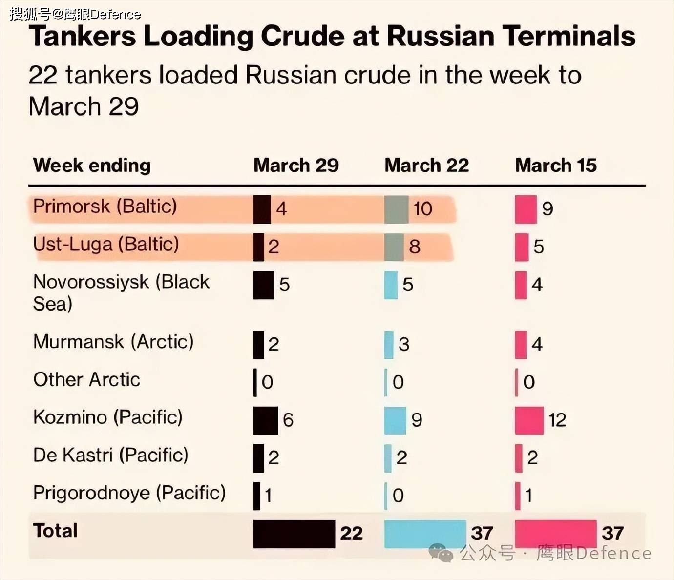 船运追踪数据显示,上周总计有37艘油轮装载了2850万桶石油离开俄罗斯,本周应该有22艘油轮装载1623万桶石油,但实际上只有7艘发出:克宫的石油收入减少了超过10亿美元。