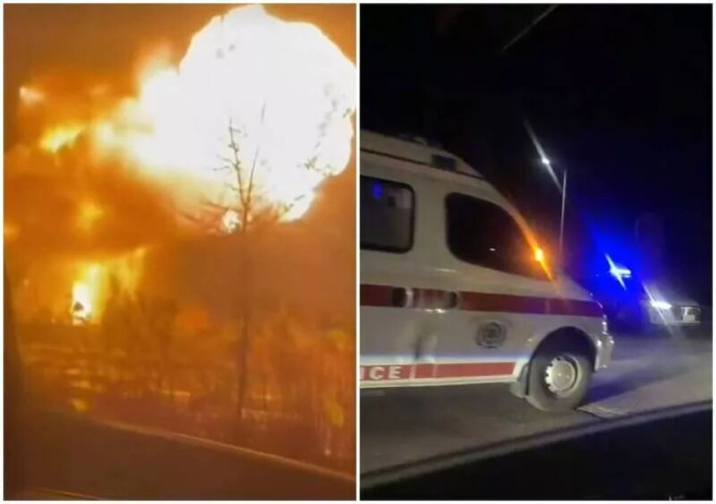 民众拍到二次爆炸后有一颗巨大火球腾空而起,当地出动多辆救护车和警车。(图翻摄自X:李老师不是你老师)